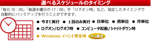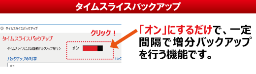 ※1 指定した時間間隔で自動的にシステムドライブ、または任意のフォルダーの増分バックアップをとる機能です。