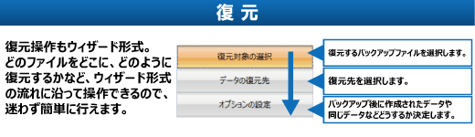 ●復元時には、復元先にバックアップ時のファイル使用容量以上の空き容量が必要です。