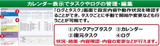 「Ver.4」では、バックアップ速度の一部高速化をはじめ、新機能の追加、既存機能の仕様の見直しによる安定化、タスク一覧の強調表示よる使いやすさの向上などを行い、前作よりも、更に使いやすくなりました。