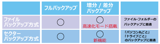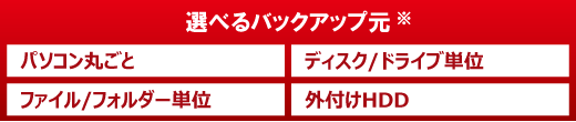 ※2 セクターバックアップ方式は、ファイル/フォルダーを個別に選択してバックアップすることはできません。ディスク/ドライブ全体でのバックアップとなります。