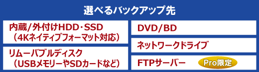 対象や目的にあわせて最適なバックアップが選べる |