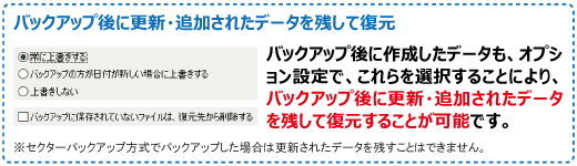 復元についてバックアップ後に更新・追加されたデータを残して復元