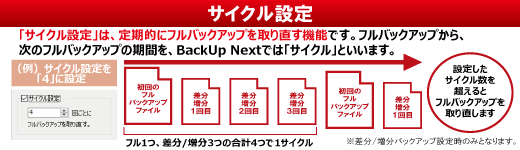 ※6 指定された保持するサイクル数を超えた場合に、古いバックアップファイルを自動で削除する機能です。