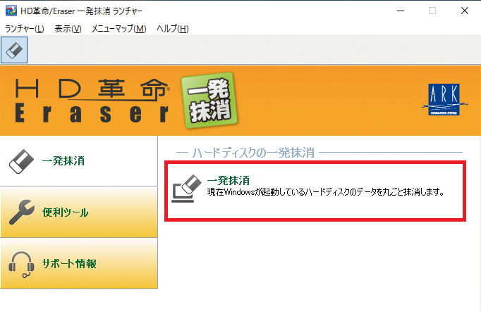 ・ 起動中のWindowsごとハードディスクを完全抹消」する機能のみが搭載された製品となります。