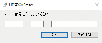 「HD 革命/Eraser 一発抹消 ランチャー」画面が起動しますので、「一発抹消」をクリックし、シリアル番号を入力します。