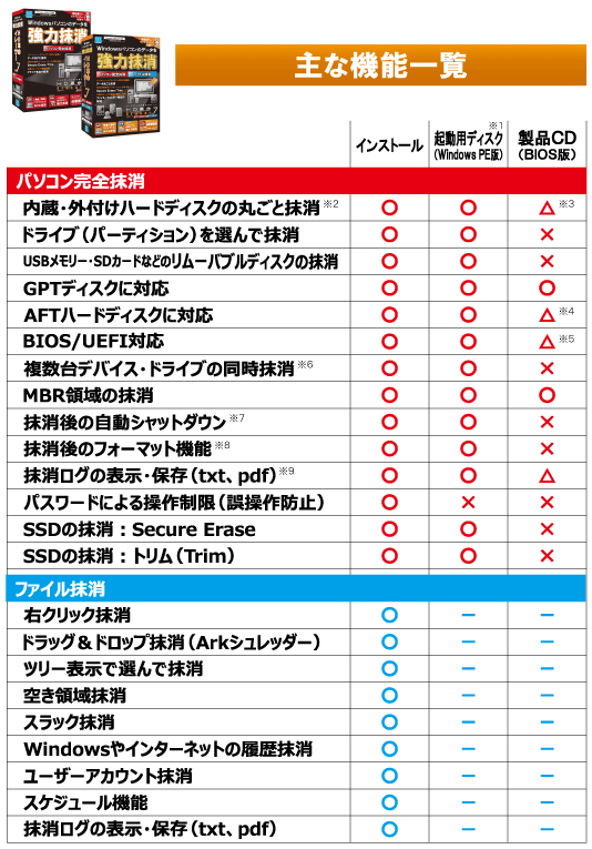 ※9 インストールしてパソコン丸ごと抹消やBIOS版での抹消では、抹消したハードディスクを別のパソコンに接続して「ログの取得」を行う必要があります。