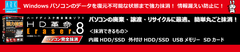 ●「HD革命」は株式会社アーク情報システムの登録商標です。「HD革命/Eraser Ver.8」の著作権は株式会社アーク情報システムが有してます。