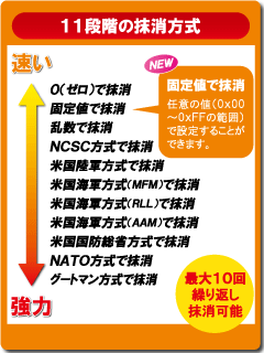 ※通常の抹消でも、データ復元ソフトウェアで復元が不可能な状態まで抹消は可能です。よりセキュ
