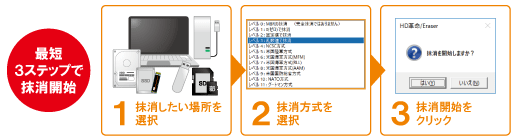 迷わず簡単操作!抹消したいディスクやドライブをチェックするだけ!