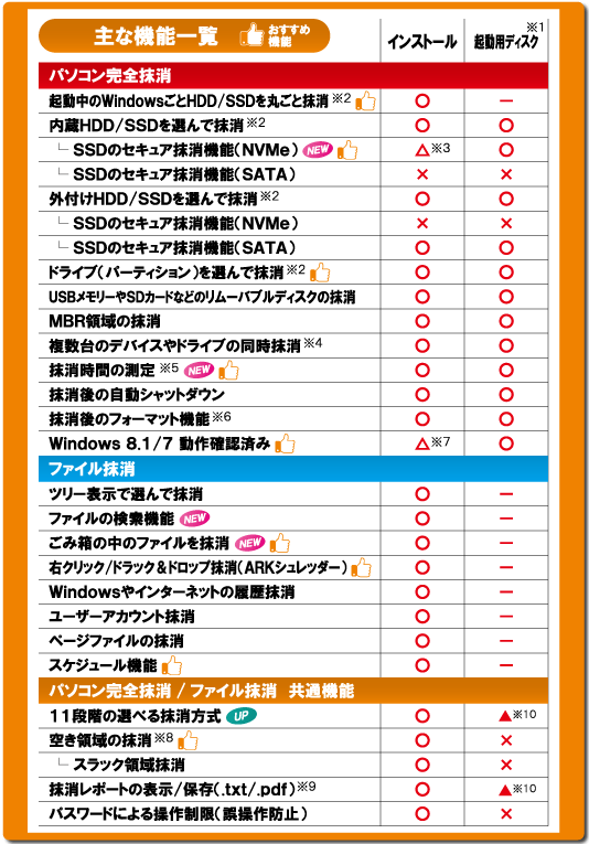 ※2 SSDはデバイスの特性により、抹消を行っても領域(ブロック)には断片的なデータが残る可能性