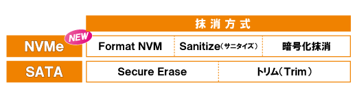 SSDに備わっている抹消機能を呼び出し、SSDのセキュアな抹消を実現しました。