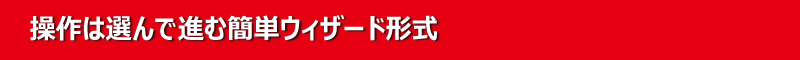 操作は、シンプルでわかりやすいウィザード形式です。はじめての方でも迷うことなくご利用いただけます。