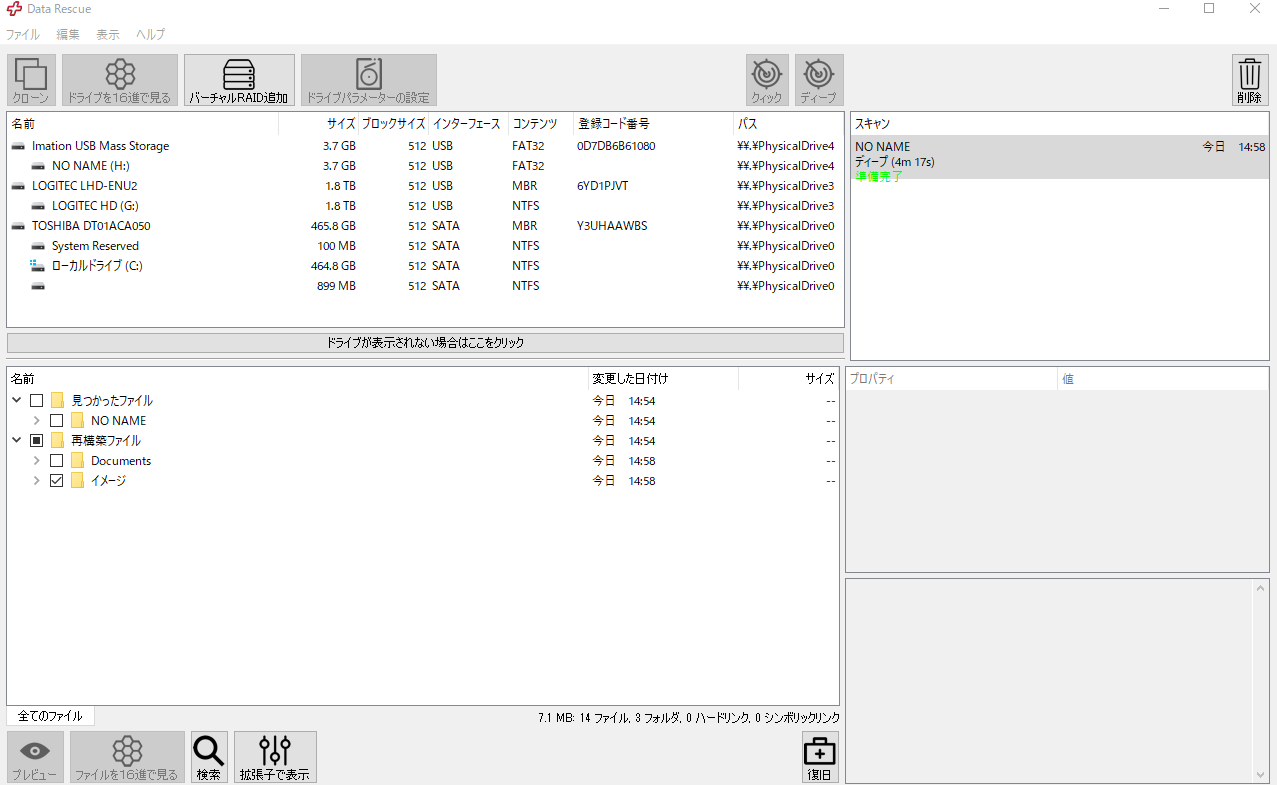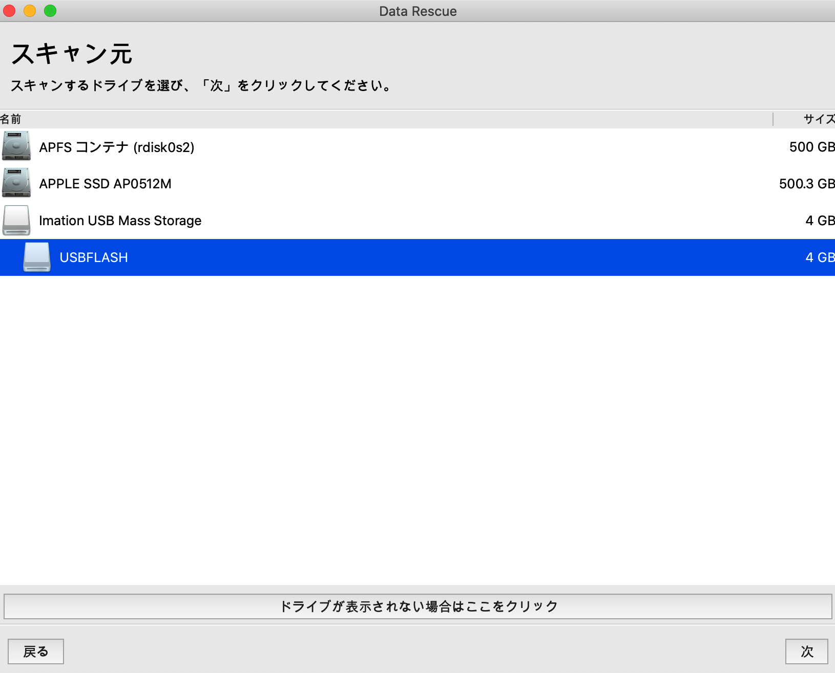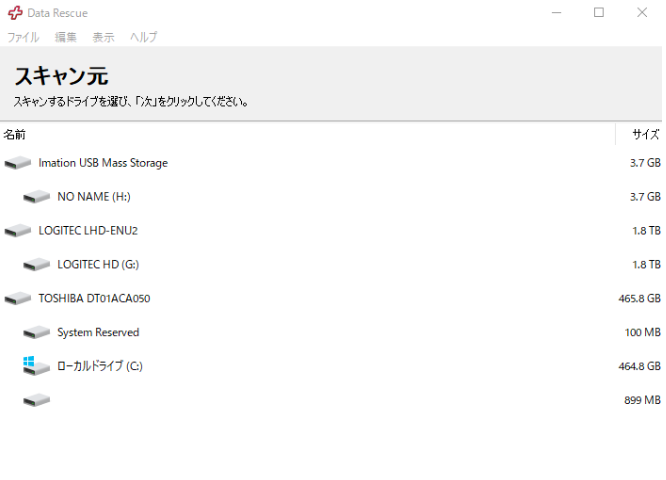 ※DataRescueから内蔵ドライブにアクセスすることは出来ません。