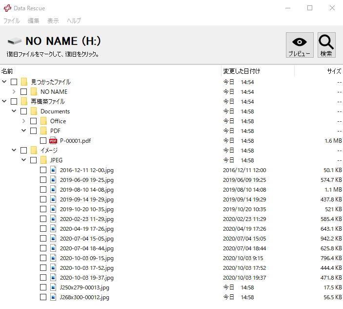 スキャンが完了したら、ファイルとフォルダを復旧対象としてマークできます。