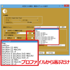 プロファイルからディスクの種類を選択するだけで、自動的に最適なオプションが設定されて構築するこ
