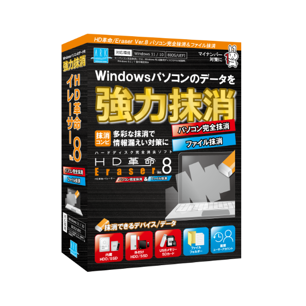「HD革命/Eraser Ver.8」は、パソコン初心者の方でも簡単にデータを抹消できる抹消ソフトです。