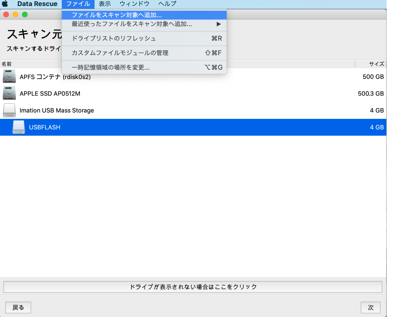 ※DataRescueから内蔵ドライブにアクセスすることは出来ません。