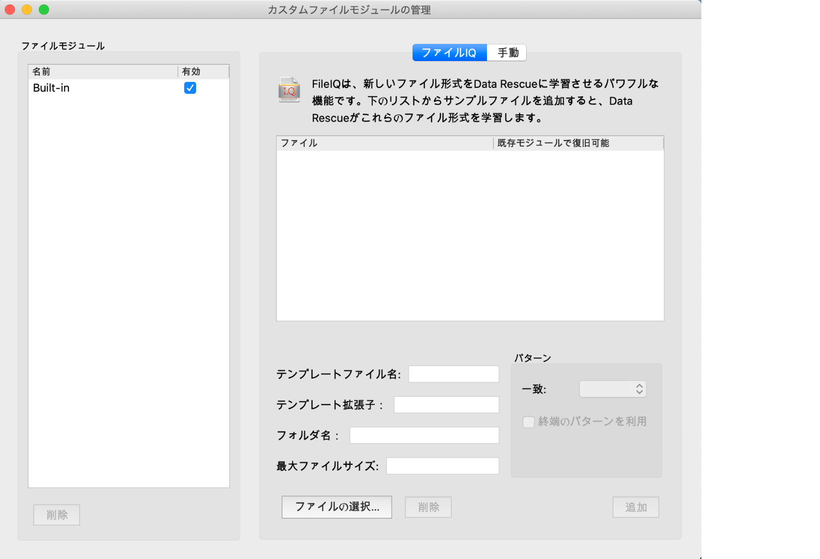 データレスキューが復旧しようとしているファイルタイプを認識しない場合、FileIQはデータレスキューが新しいファイルタイプを学ぶのに役立ちます。データレスキューは、正常なファイルサンプルを分析し、そのファイルタイプの不足しているファイルを見つけるのに役立つファイルパターンを検出します。
