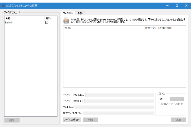 データレスキューを開き、ファイル→カスタムファイルモジュールの管理のドロップダウンメニューオプションに移動します。